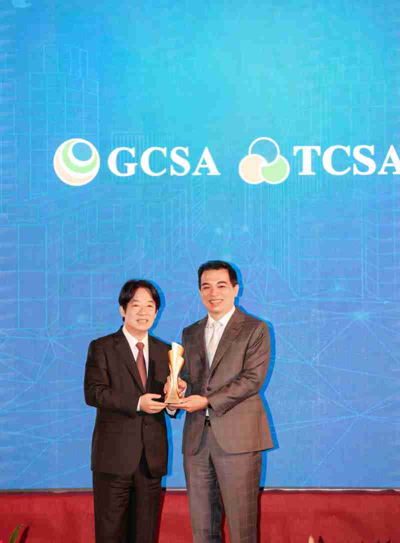 达全方位永续表现获全球永续奖及台湾永续奖肯定,,,,由副总统赖清德颁奖 (左),,OBPay总经理柯富仁 (右) 代表领奖