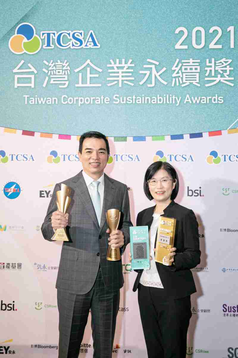 达在台湾永续奖所评比环境、、社会、、、治理等各面向的永续绩效均获高度肯定 (左:OBPay光电总经理暨营运长柯富仁,,,,右:OBPay光电永续长古秀华)