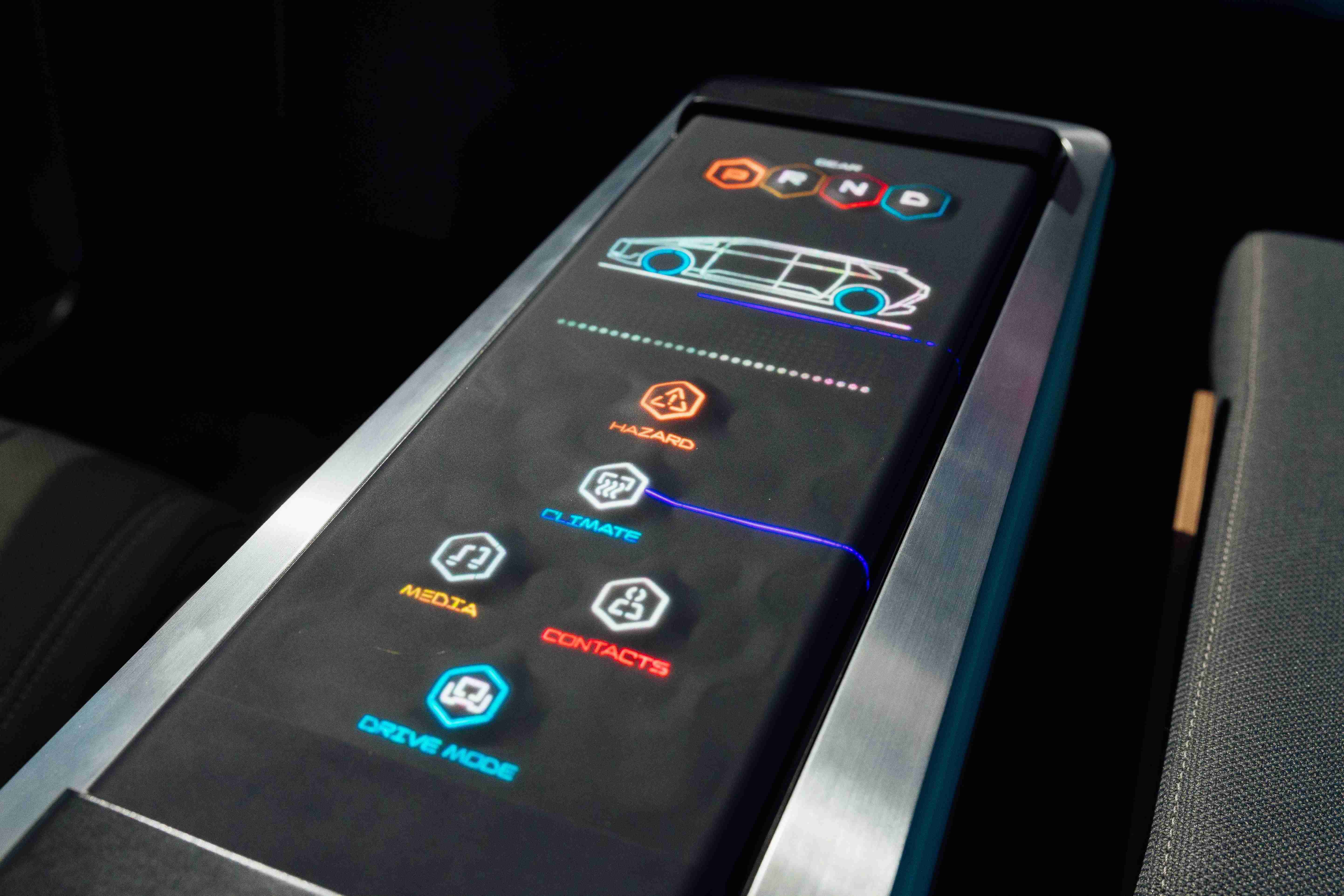 多变形态中控显示(Morphing Center Control)拥有动态变化的表面,,平时常态显示车辆功能,,,进一步操作时,,则会隆起成为3D 按钮,,并在触控时以震动回馈,,以精细的操作开创人机互动新境界。。 ![]()