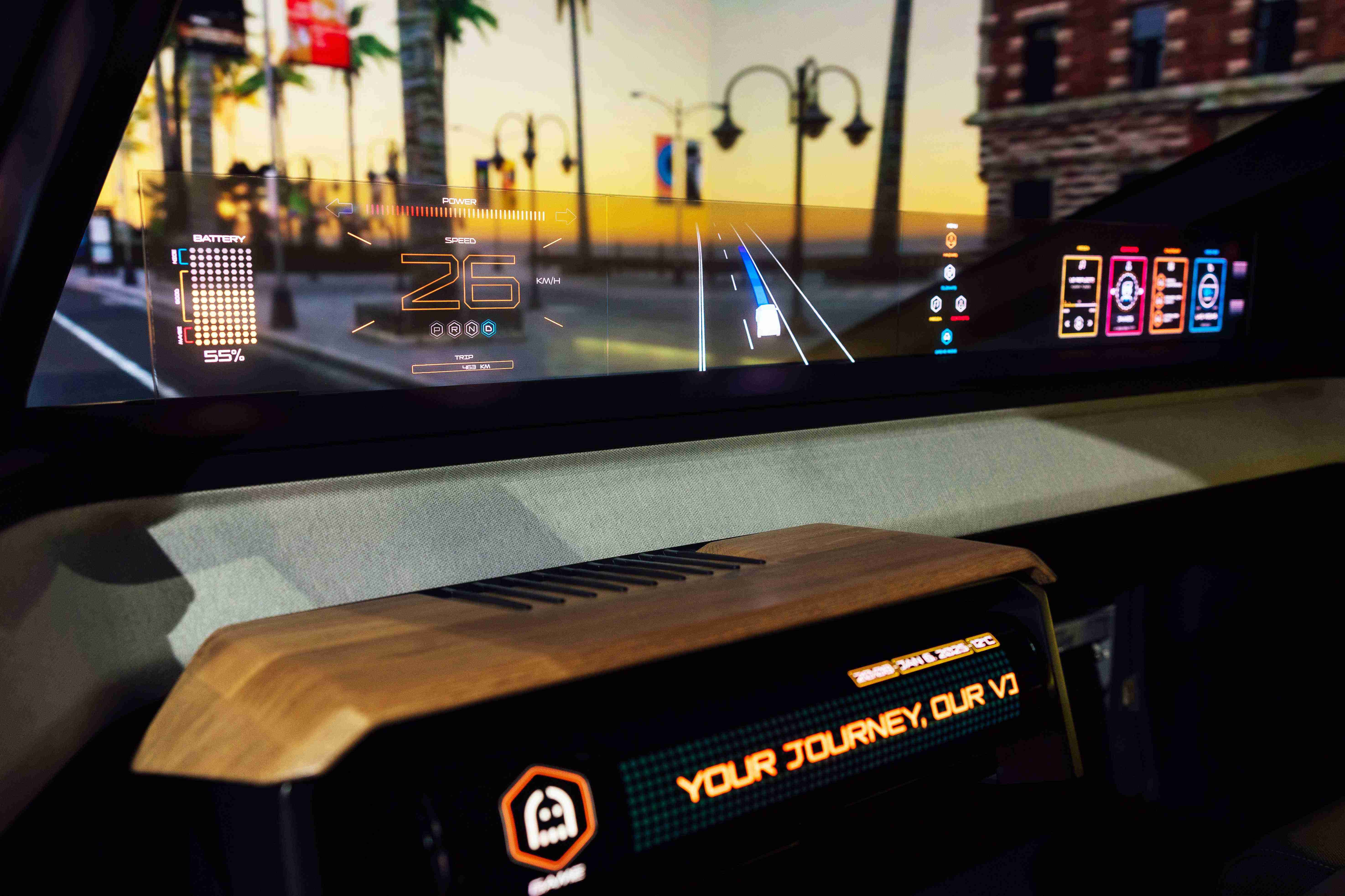 隐藏式智驾介面(Foldable Cruise Pilot)在不同模式下可以切换显示方式,,,,在手动驾驶模式时,,,显示器可以在半收合状态下,,仍呈现所需资讯;自驾模式时,,显示器可以完全展开,,,满足不同的多媒体娱乐需求。。。。 OBPaySmart Cockpit 2025 在车头及车尾搭载合作伙伴Ennostar开发的互动式矩阵显示器(Interactive Matrix Display),,其突破传设计框架,,,利用优化的光源整合技术,,,,提供更高亮度与对比度的显示效果,,,,营造驾车者个性化风格并传递讯息。。。