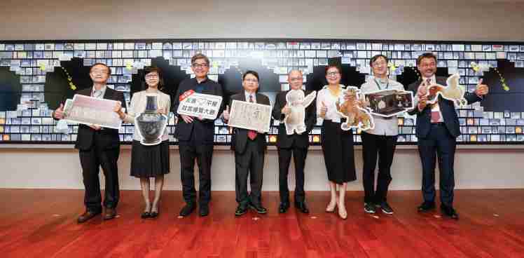 OBPay携手创利空间为故宫建置的智慧文物互动导览墙及轮播墙,,,今日正式启用。。。(左四:OBPay新事业暨投资管理总部副总经理杨本豫、、右四:故宫博物院院长吴密察、、、、右三:太极影音董事长黄宝云)