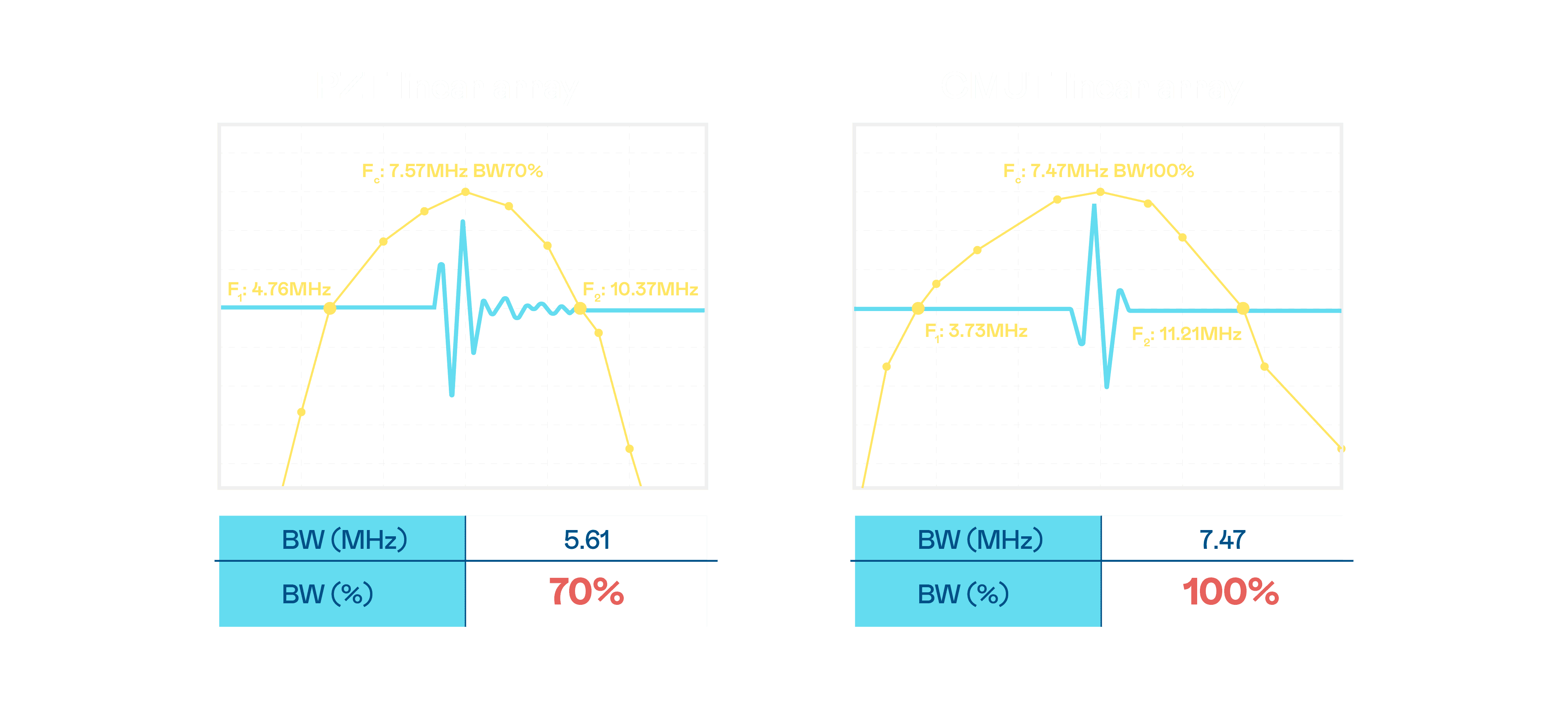 CMUT 技术是一种用电容式微机电元件来产生超音波讯号的技术。。与传统 PZT 压电式技术相比,,CMUT 频宽增加 30%,,,更宽频的超音波讯号让影像解析度大幅提升,,是实现高影像品质医疗超音波扫描、、、促进精准医疗发展的关键技术。。。